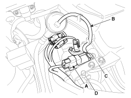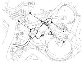 Отсоедините вакуумные шланги (В, С) от клапана.