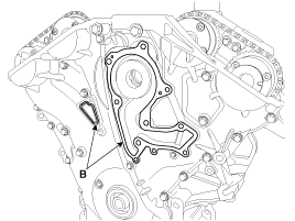 Проверьте на утечку охлаждающей жидкости. Если охлаждающая жидкость вытекает из отверстия, уплотнение повреждено. Замените насос охлаждающей жидкости в сборе.
