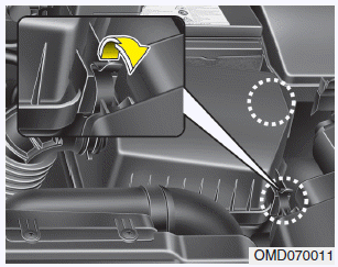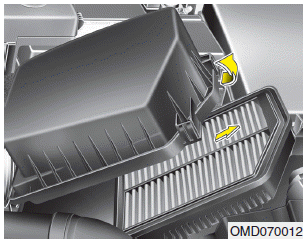 1. Ослабьте зажимы крепления крышки воздушного фильтра и откройте крышку.
