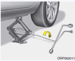 11. Опустите автомобиль на землю, повернув ключ для колесных гаек против часовой стрелки.
