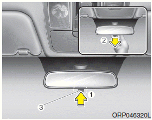Потяните рычаг день/ночь (3) на себя, чтобы уменьшить слепящий свет фар автомобиля. транспортные средства позади вас во время ночного вождения.