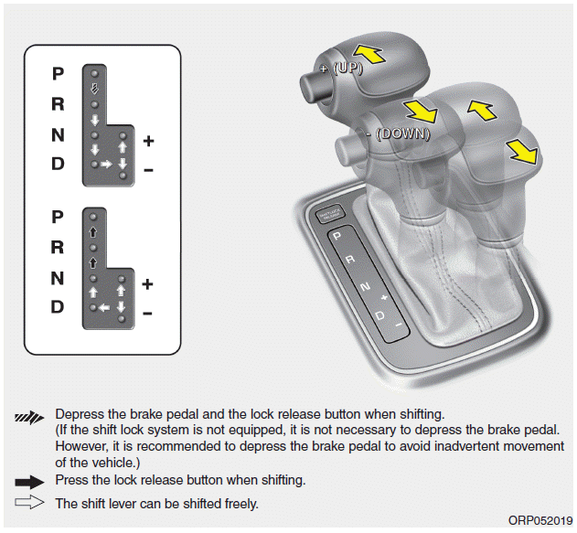 Никогда не переводите рычаг переключения передач в положение P (Парковка), когда автомобиль находится в движении.