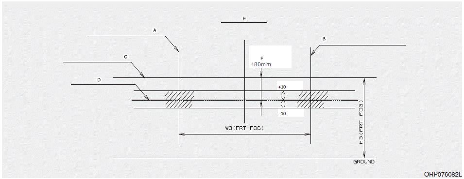 C : Горизонтальная линия центра противотуманной фары (ближнего света)
