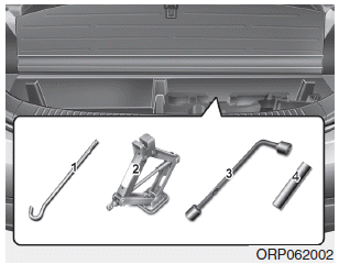 Домкрат, рукоятка домкрата, ключ для колесных гаек хранятся в багажном отделении.