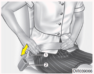 Если вы хотите отстегнуть ремень безопасности, нажмите кнопку (1) в пряжке замка.