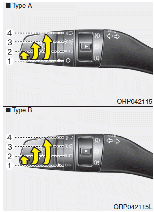 Для управления освещением поверните ручку на конце рычага управления в одно из следующие позиции: