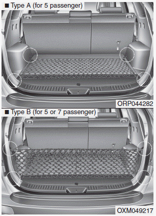Чтобы предметы не смещались в багажном отделении, вы можете использовать четыре держателя, расположенные в багажном отделении для крепления багажной сетки. При необходимости рекомендуем вам обратитесь к авторизованному дилеру Киа.