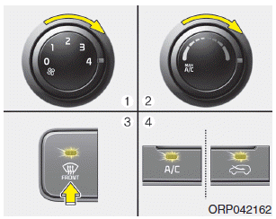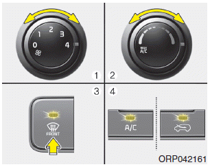 4. Наружный (свежий) воздух и кондиционер будут выбраны автоматически.