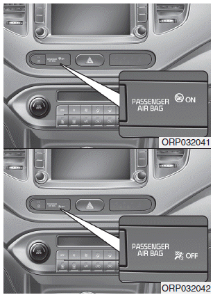 Когда переключатель ON/OFF передней подушки безопасности пассажира установлен в положение ON,