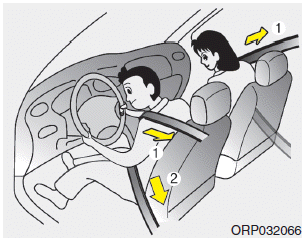 (1) Преднатяжитель втягивающего устройства Натяжитель втягивающего устройства предназначен для Убедитесь, что плечевые ремни плотно прилегают к верхней части тела пассажира в некоторые лобовые столкновения.