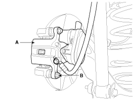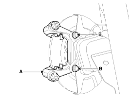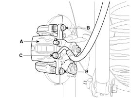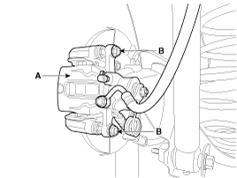 Ослабьте болты крепления суппорта (В), затем снимите задний суппорт.