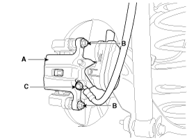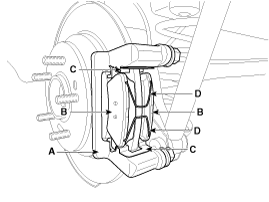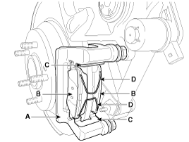 Замените держатели колодок (C) и тормозные колодки (B) в держателе суппорта.