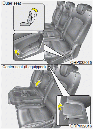 Kia Carens: Регулировка заднего сиденья / Угол наклона спинки сиденья (сиденье 2-го ряда)