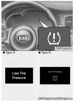 Если индикатор TPMS, низкого давления в шинах не загорается в течение 3 секунд при ключ зажигания повернут в положение ON или двигатель работает, или если они остаются гореть после включения в течение приблизительно 3 секунд, мы рекомендуем система должна быть проверена авторизованным дилером Киа.