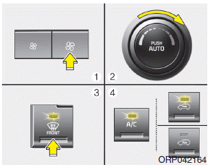 Kia Carens: Автоматическая система климат-контроля / Для разморозки лобового стекла снаружи