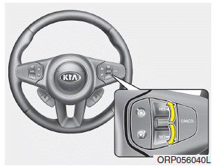 3. Переместите рычаг вверх (к RES+) или вниз (к SET-) и отпустите в нужное время. скорость. Переместите рычаг вверх (к RES+) или вниз (к SET-) и удерживайте его. Скорость будет увеличить или уменьшить на 5 км/ч (3 мили в час). Переместите рычаг вверх (к RES+) или вниз (SET-) и немедленно отпустите. Скорость увеличится или уменьшится на 1 км/ч.