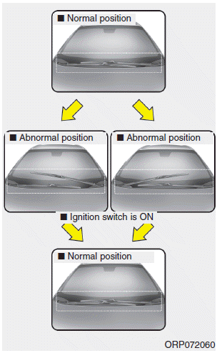 Ниже приведены случаи, когда щетка стеклоочистителя может находиться в ненормальном положении.
