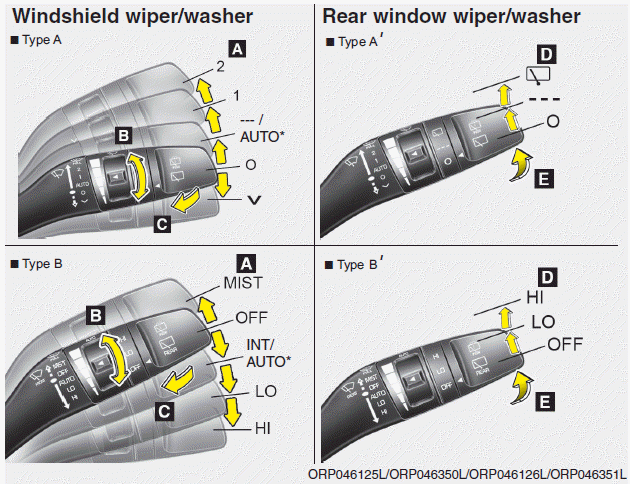 B : Регулировка времени прерывистого контроля стеклоочистителя