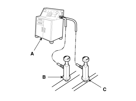 Подсоедините систему регенерации/рециркуляции/заправки хладагента R-134a (A) к