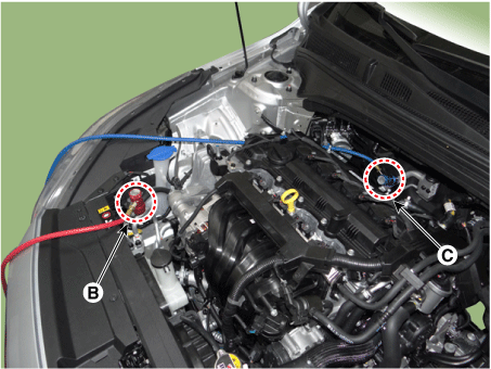 к сервисному порту высокого давления (B) и сервисному порту низкого давления