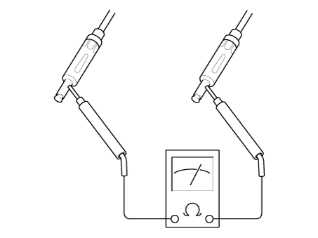 Прикоснитесь одним щупом тестера к терминалу стеклянной антенны (A) и переместите другой тестер прощупывает провода антенны, чтобы проверить наличие непрерывности.