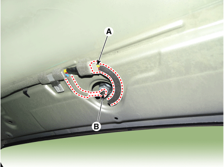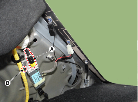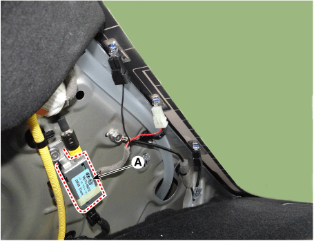 Ослабьте болт, а затем снимите усилитель стеклянной антенны (A) после отсоединения. соединитель.