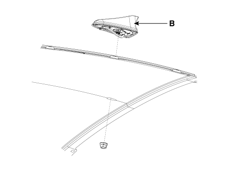 Снимите антенну на крыше (B) после ослабления гайки (A).