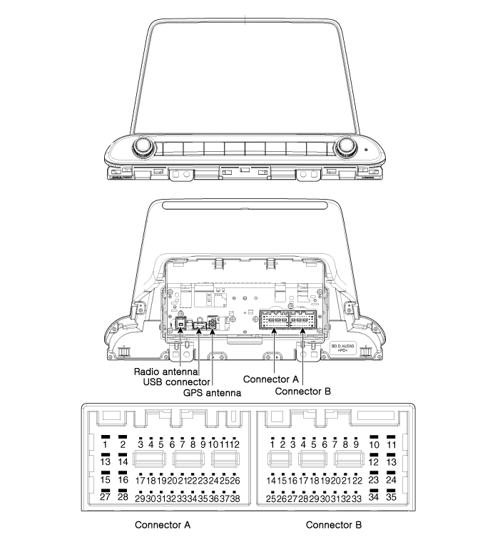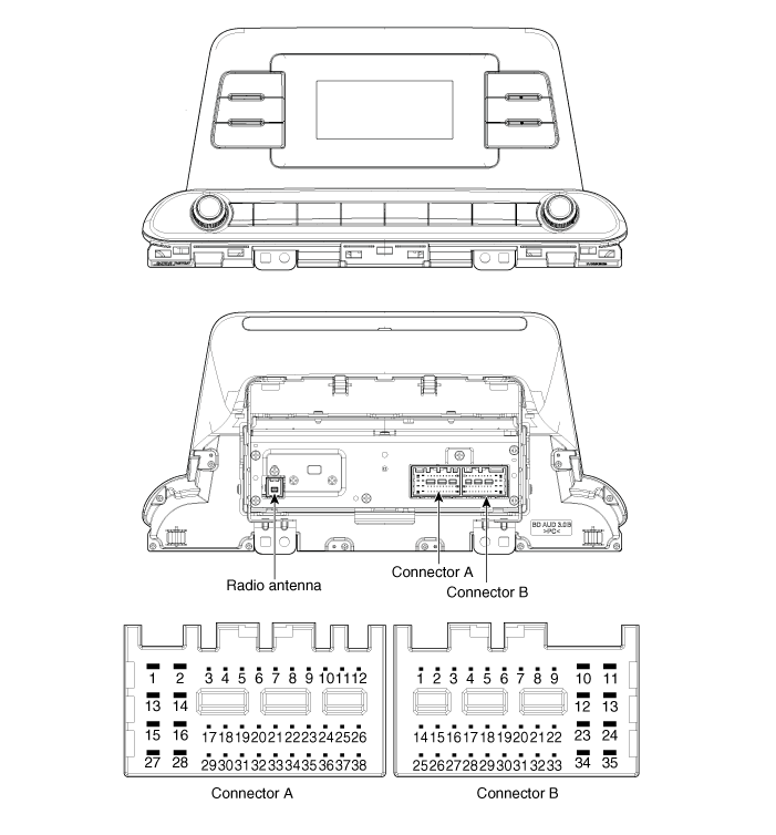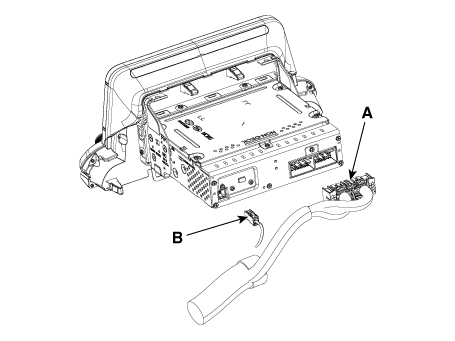 Отсоедините разъем головного аудиоустройства (A) и радиокабель (B).