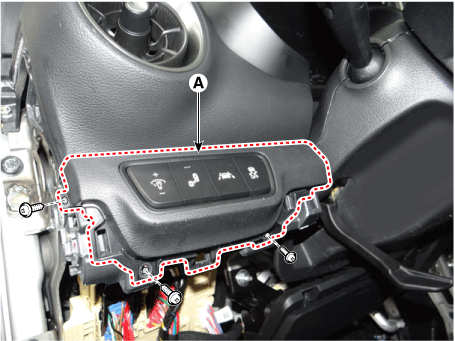 Снимите панель переключателей боковой накладки (A) после ослабления крепления. винты.