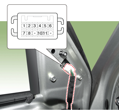 Отсоедините отрицательную (-) клемму аккумуляторной батареи. |