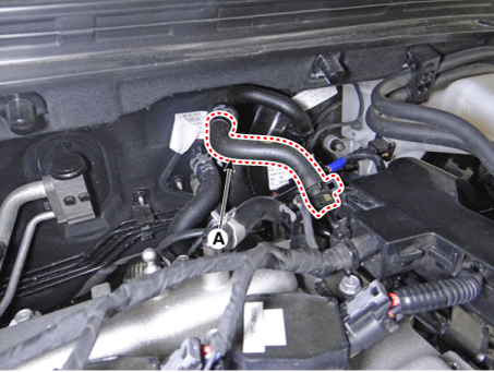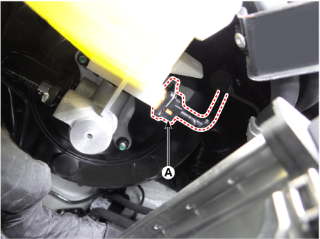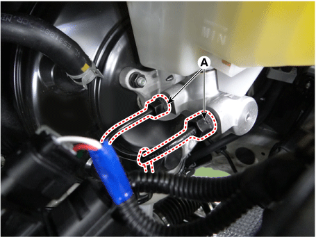 Отсоедините разъем датчика уровня тормозной жидкости (А).