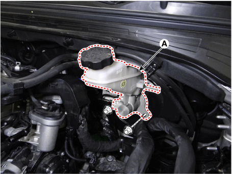 Снимите главный цилиндр (А) с усилителя тормозов после ослабления монтажные гайки.