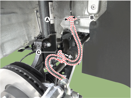 Отсоедините кронштейн тормозного шланга (С), ослабив болт.
