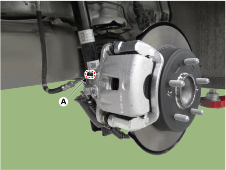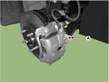 Ослабьте винт для прокачки правого заднего тормоза (А), чтобы воздух вышел из система. Затем надежно затяните прокачной винт.