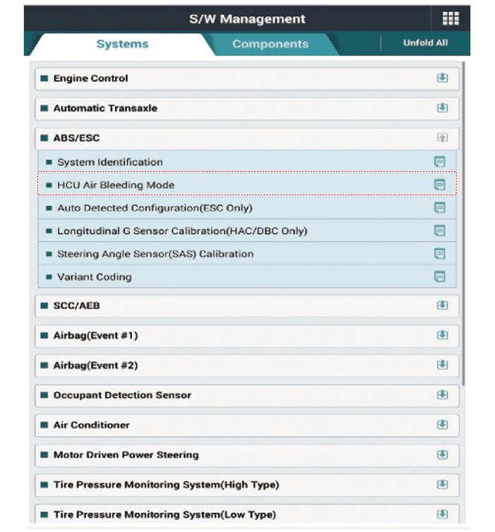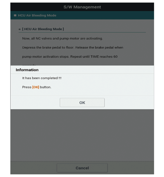 Эта процедура должна выполняться для обеспечения адекватного выпуска воздуха и наполнения блока ESC, тормозных магистралей и главного цилиндра тормозной жидкостью.