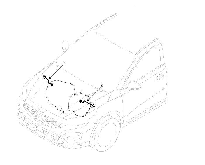 2. Положительная (+) клемма блока предохранителей и реле в моторном отсеке. 3. Отрицательная (+) клемма аккумулятора |