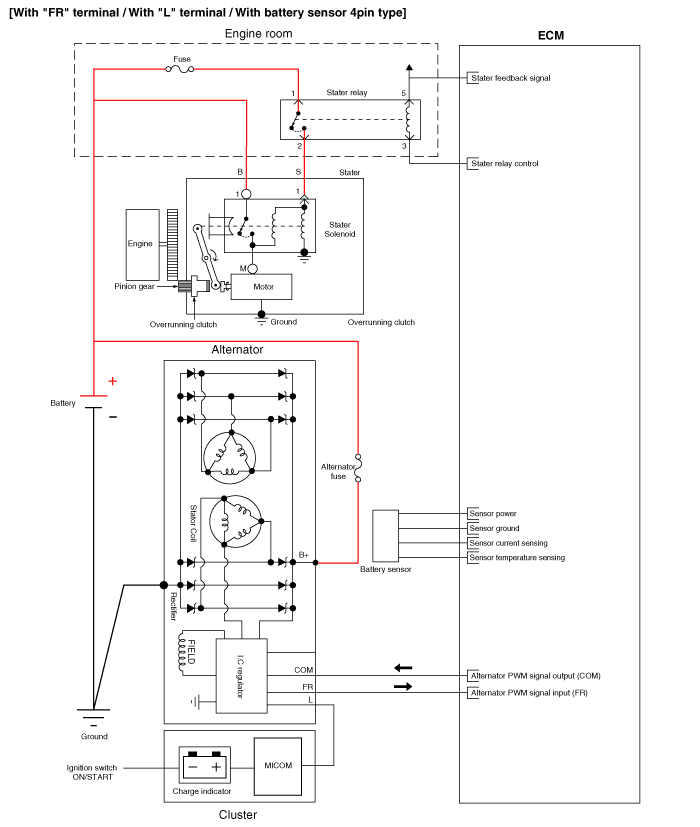Испытание на падение напряжения выходного провода генератора переменного тока Этот тест определяет, подключена ли проводка между генератором Клемма «В» и клемма аккумулятора (+) исправны по методу падения напряжения.