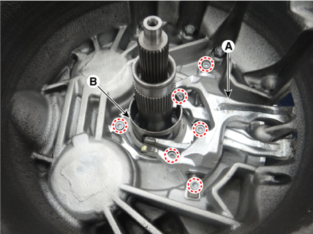 Снимите вилку включения сцепления (А) и втулку подшипника включения (В).
