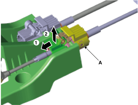 Снимите трос управления с вала управления после удаления защелки булавки (А). |