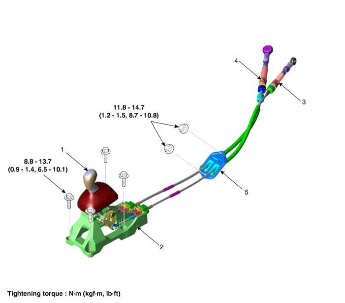 2. Рычаг переключения передач в сборе 3. Выберите кабель |
