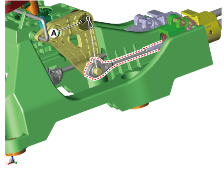 Убедитесь, что рычаг переключения передач и вал управления находятся в положении «4-я». положение, а затем установите 4-й фиксирующий штифт (A).