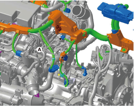 После выключения двигателя, а затем отсоедините встроенное терморегулирование разъем модуля (ITM) (A).