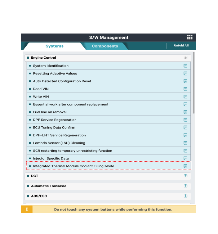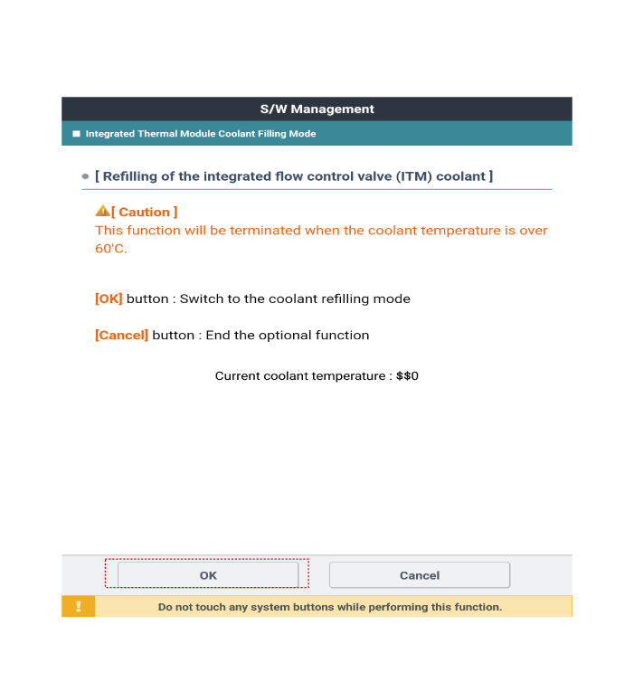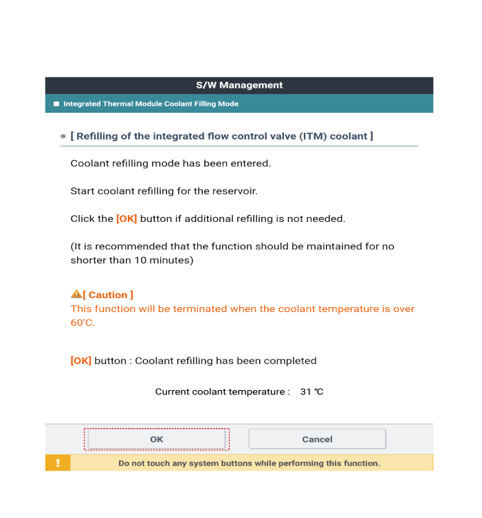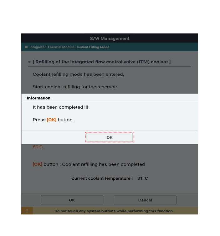 Выполните «Режим заполнения охлаждающей жидкостью встроенного термомодуля».
