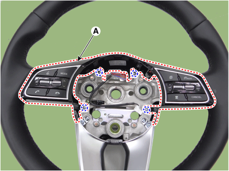 Снимите обшивку рулевого колеса в сборе (А) после ослабления крепления. винты.