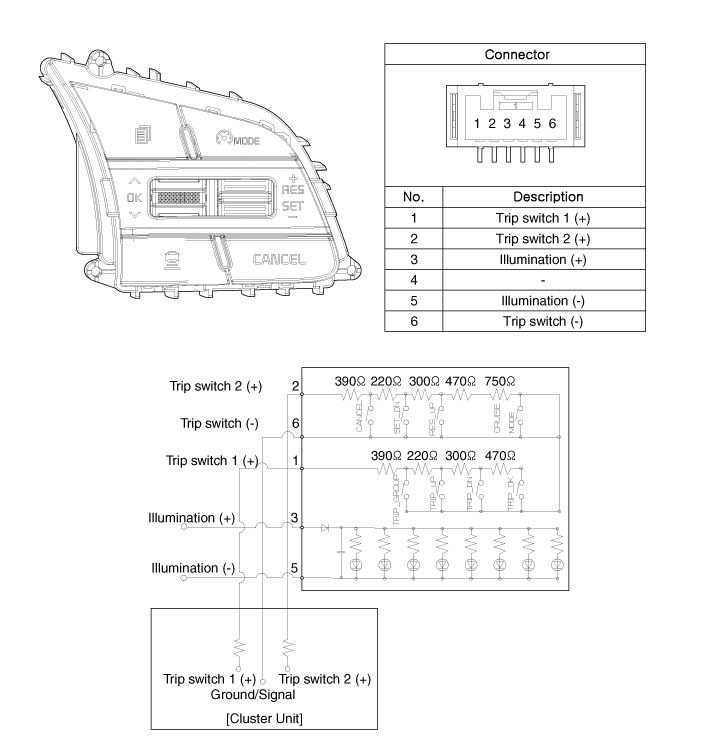 Киа Kia Forte 2019-2023 (БД) Руководство по ремонту / Электрическая система двигателя / Система круиз-контроля / Переключатель круиз-контроля