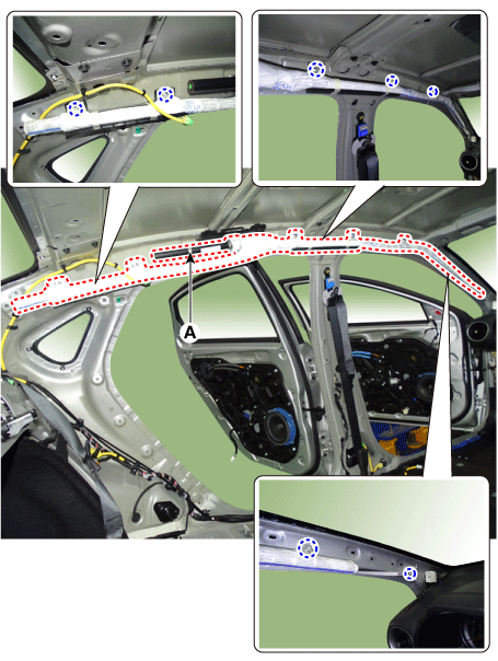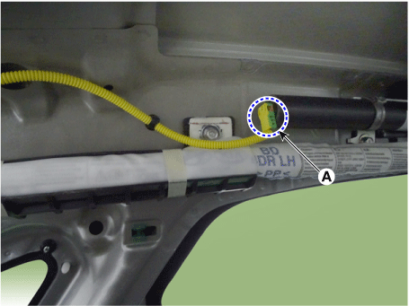 Отсоедините разъем (А) модуля шторной подушки безопасности.