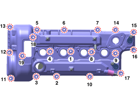 Отсоедините разъем проводки двигателя и зажим жгута проводов, а затем снимите протектор головки блока цилиндров и проводку от крышки головки блока цилиндров.