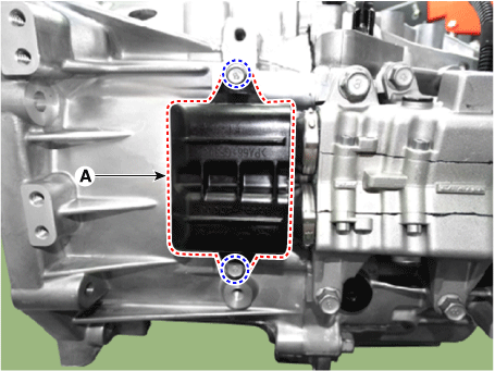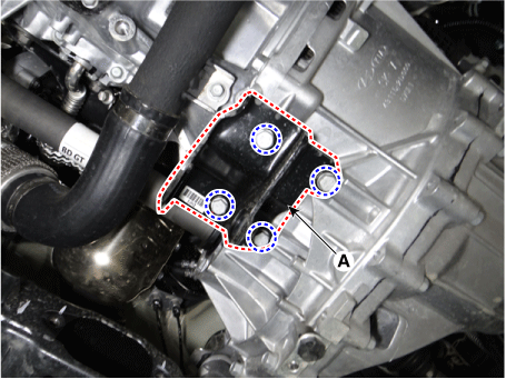 Ослабьте болты кронштейна крепления коробки передач (А).