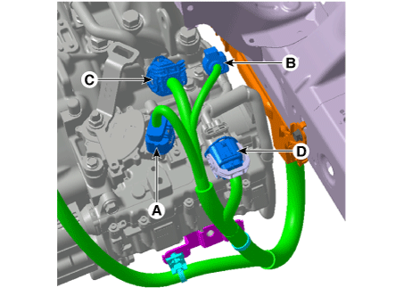 Отсоедините разъемы (A, B, C, D) на рисунке ниже.