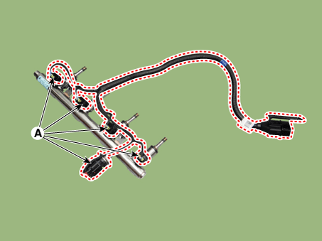 Отсоедините форсунку и разъем датчика давления в рампе (А).